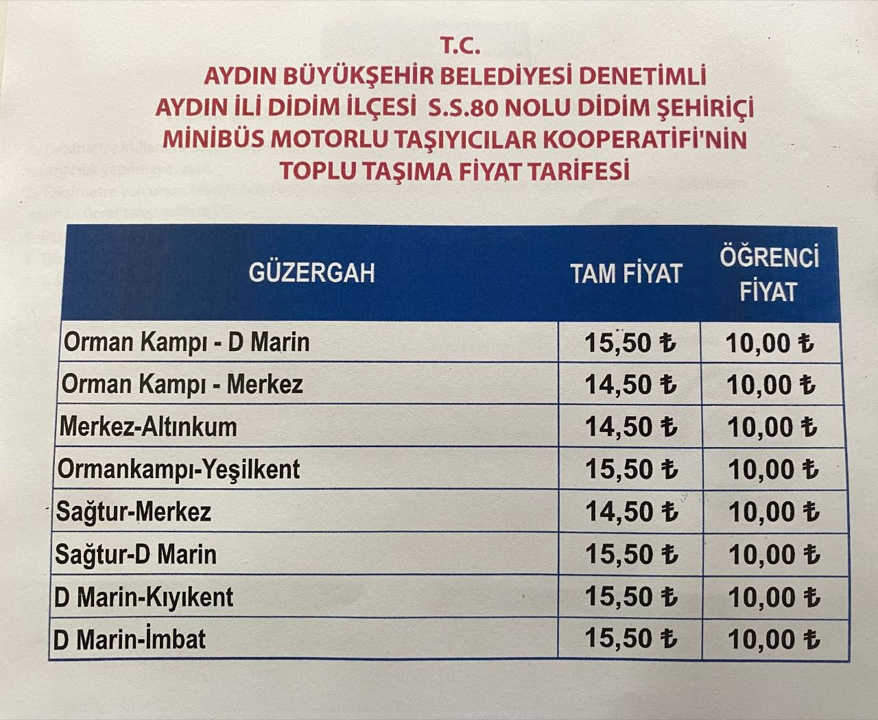 Didim'de dolmuş ve taksi ücretleri zamlandı