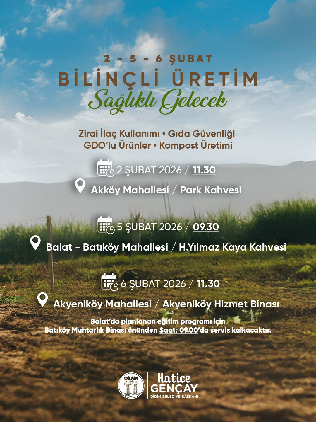 “Toprağımızı, ürünlerimizi ve halk sağlığını korumanın yolu bilinçli üretimden geçiyor. Eğitimimize tüm çiftçi ve üreticilerimizi davet ediyorum. Sağlıklı bir gelecek için birlikte öğrenmeye ve üretmeye devam edeceğiz.”