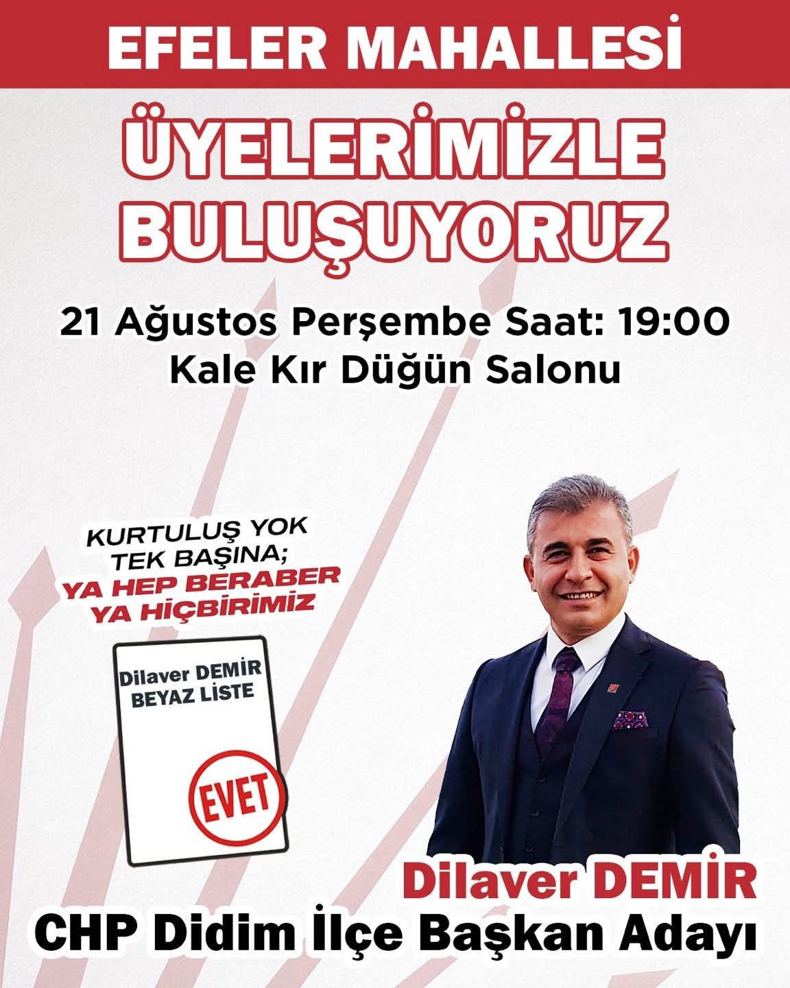 Didim'in iş dünyası ve siyasi yaşamında son yıllarda parlayan yıldızı olan Dilaver Demir, CHP İlçe Başkanlığı kampanyasını dolu dizgin sürdürüyor.