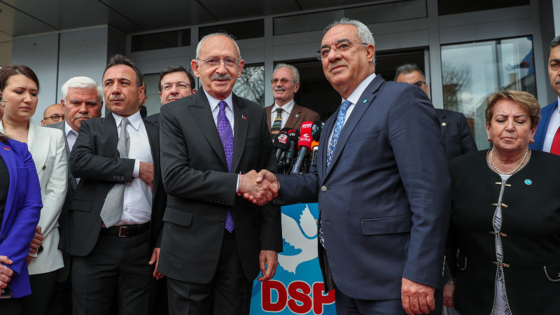 AKP'nin, DSP'ye yaptığı ziyaretin ardından da DSP Genel Başkanı Önder Aksakal ve partisinden bir heyet, saat 16.00'da AKP Genel Merkezi'ne geldi. Görüşmenin ardından açıklama yapan DSP Genel Başkanı Öner Aksakal, 14 Mayıs seçimlerinde Tayyip Erdoğan'ı destekleyeceklerini duyurdu.