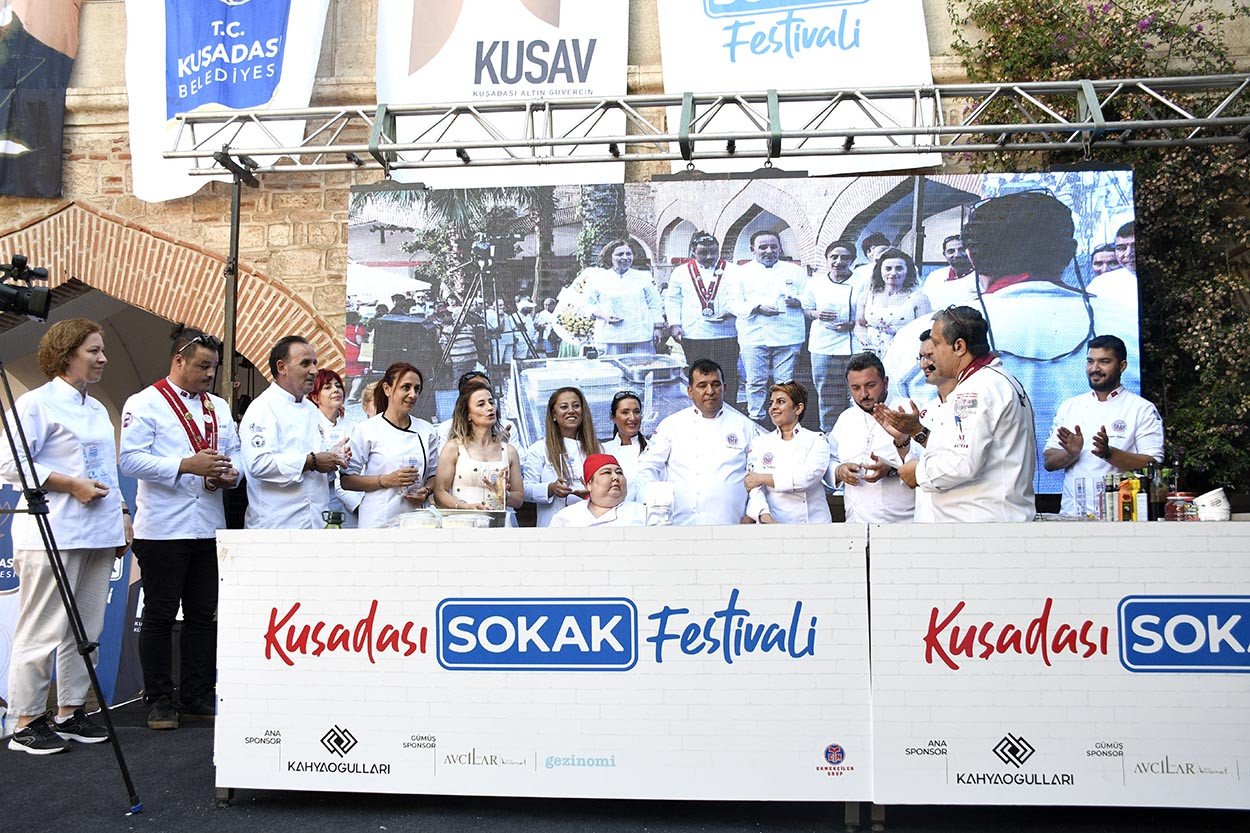 Ayhan Sicimoğlu’nun danışmanlığında “Lezzet Sokakta”, “Eğlence Sokakta”, “Müzik Sokakta” ve “Sanat Sokakta” başlıklarıyla gerçekleşen Kuşadası Sokak Festivali, Ege’ye has yöresel lezzetlerin yanı sıra deprem bölgesinin zengin gastronomi kültürünü de kente taşıyarak Türkiye’nin dört bir yanından binlerce kişiye ev sahipliği yaptı.