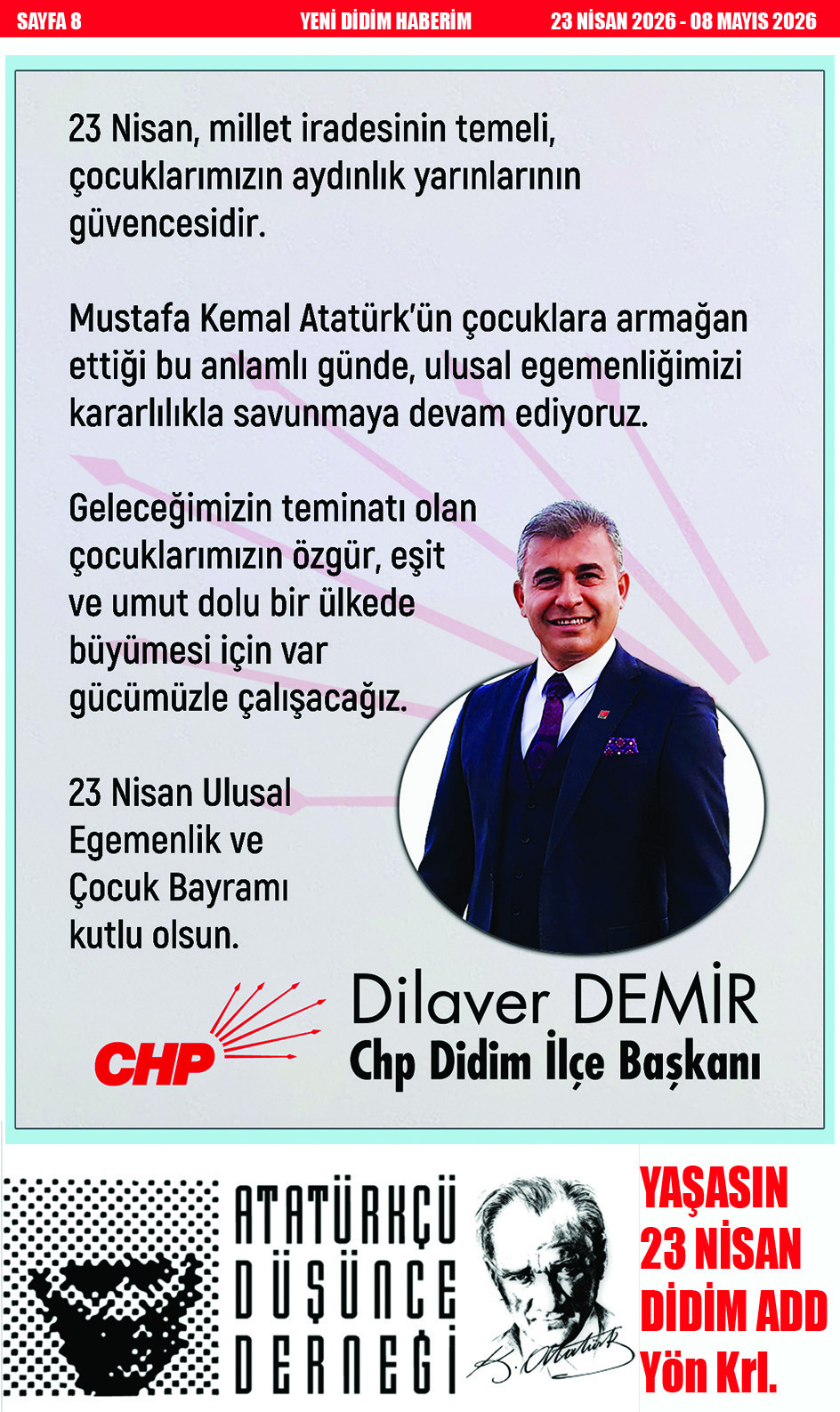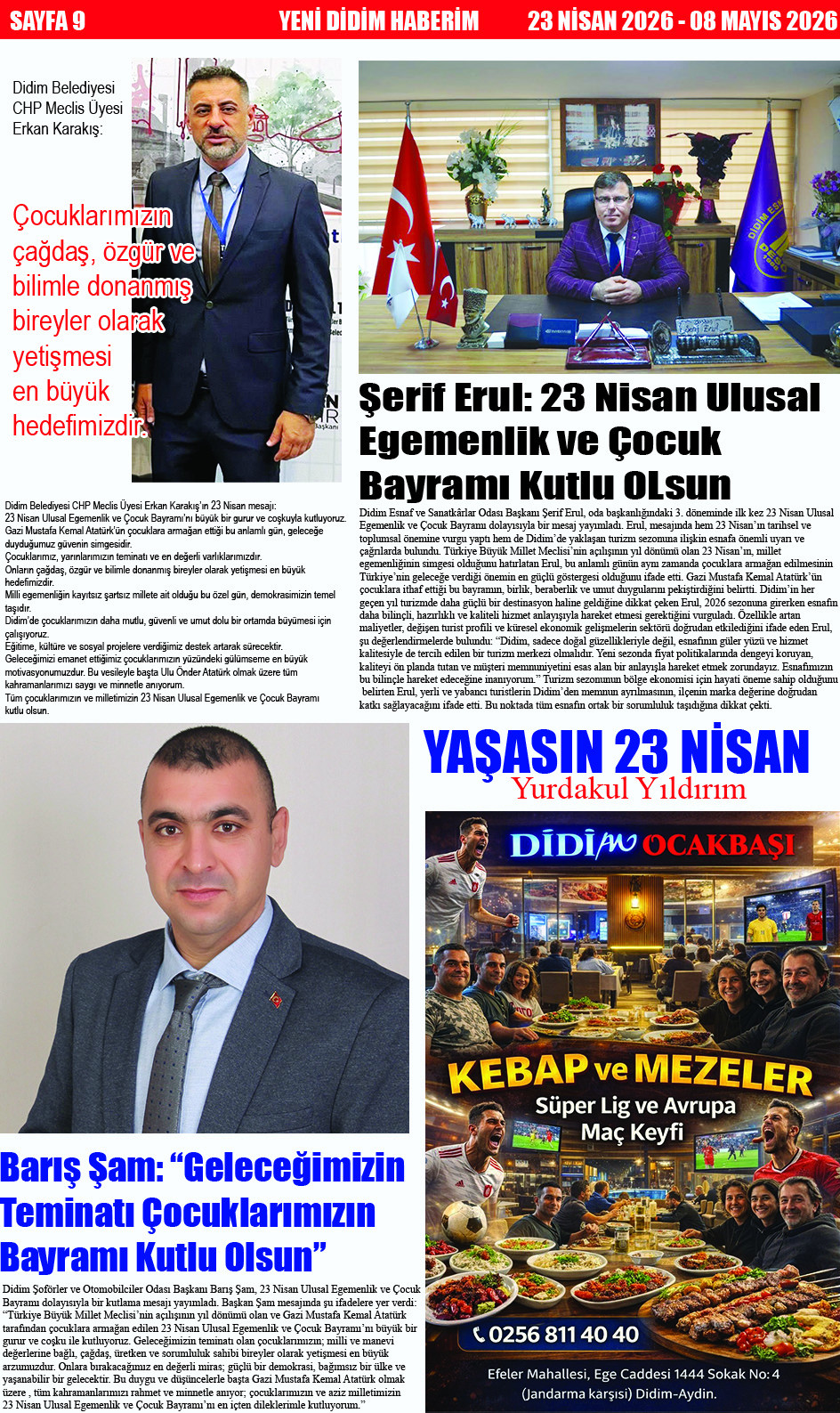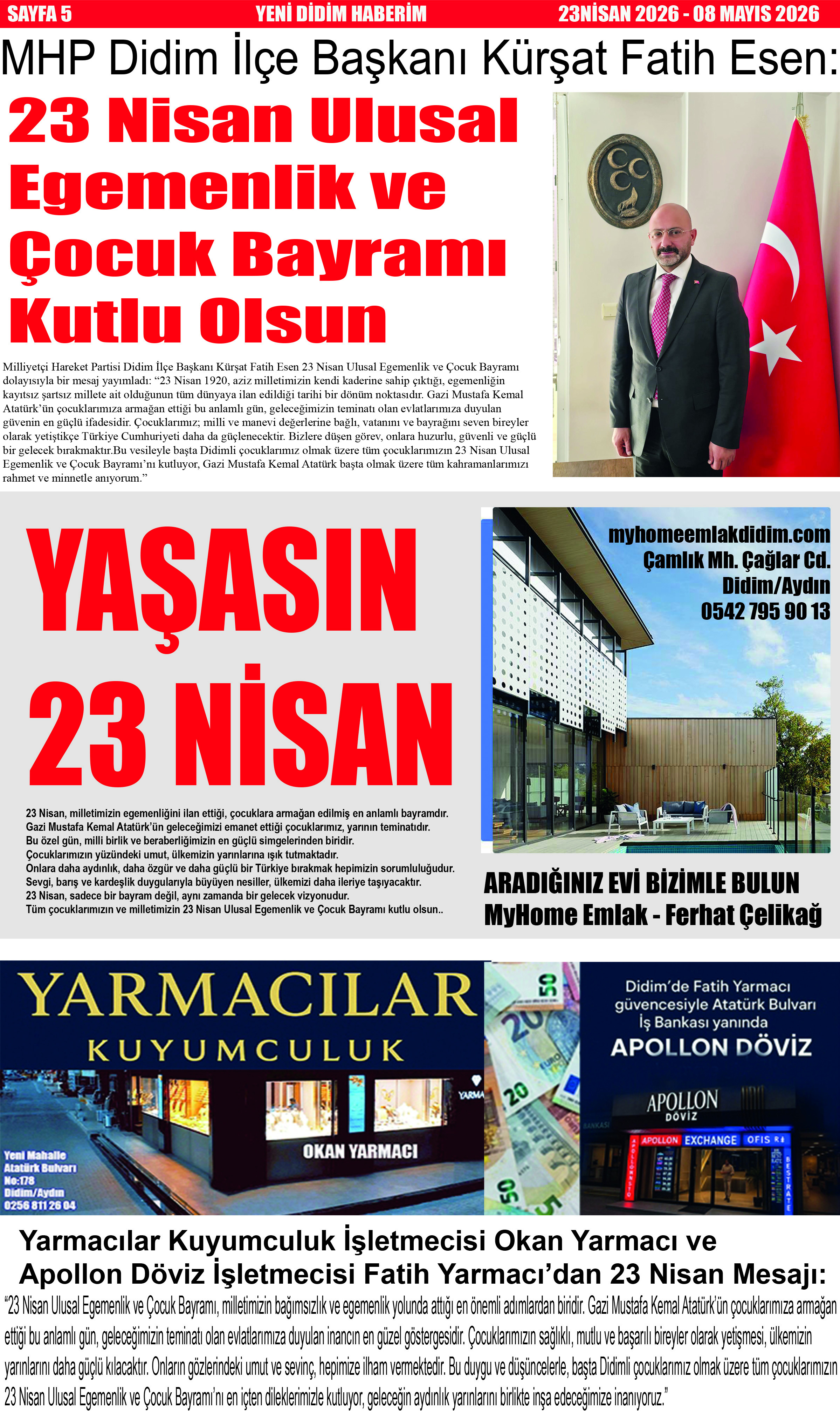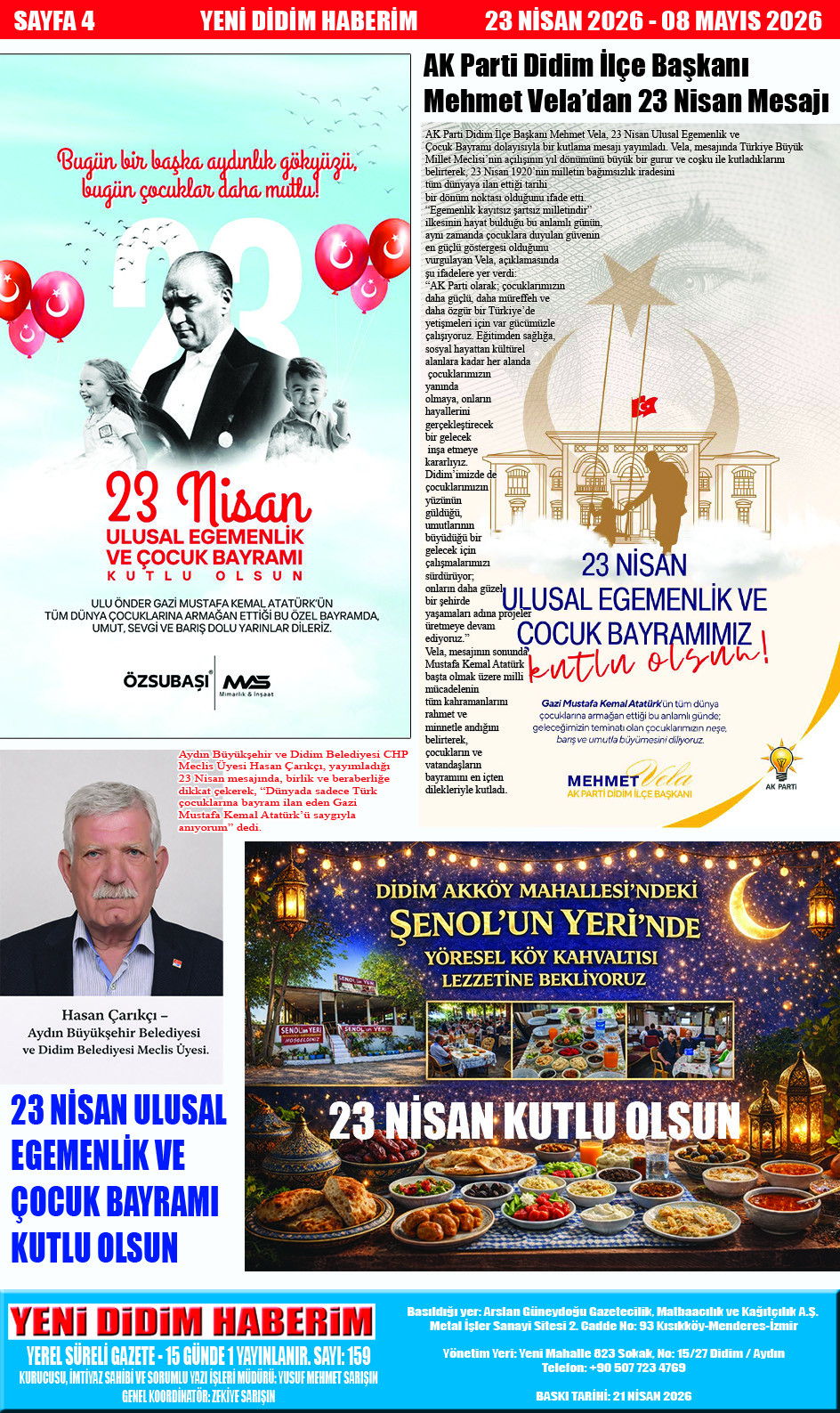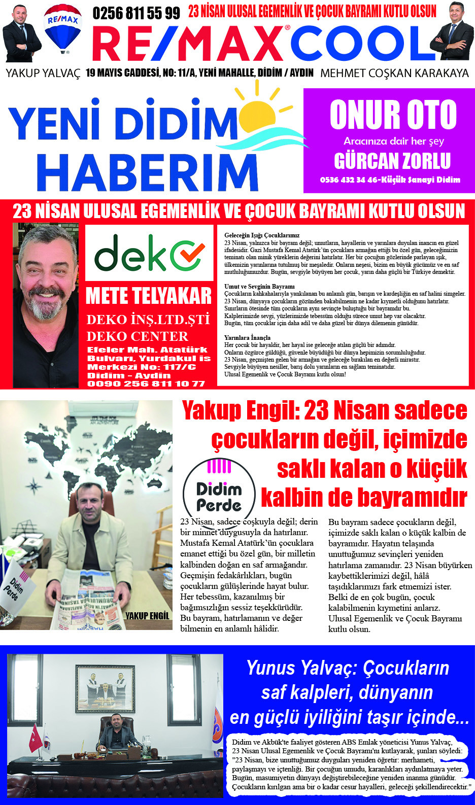 Yeni Didim Haberim Gazetesi 23 Nisan Özel Sayısı Çıktı. Reklam verenlere teşekkür ederiz. (YUsuf Mehmet Sarışın - Zekiye Sarışın)