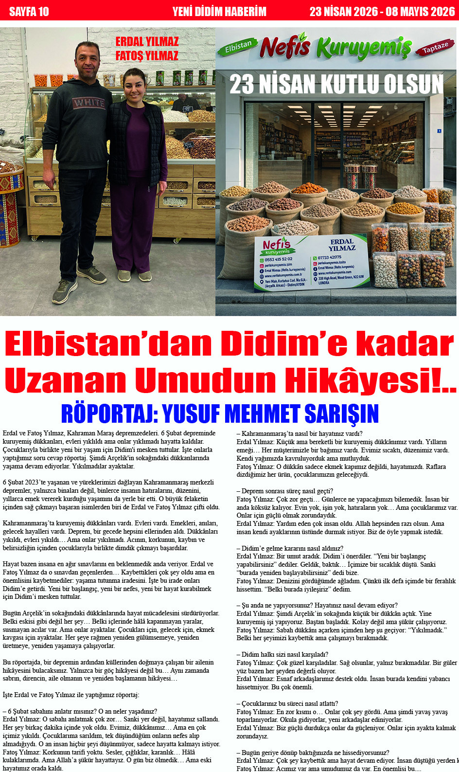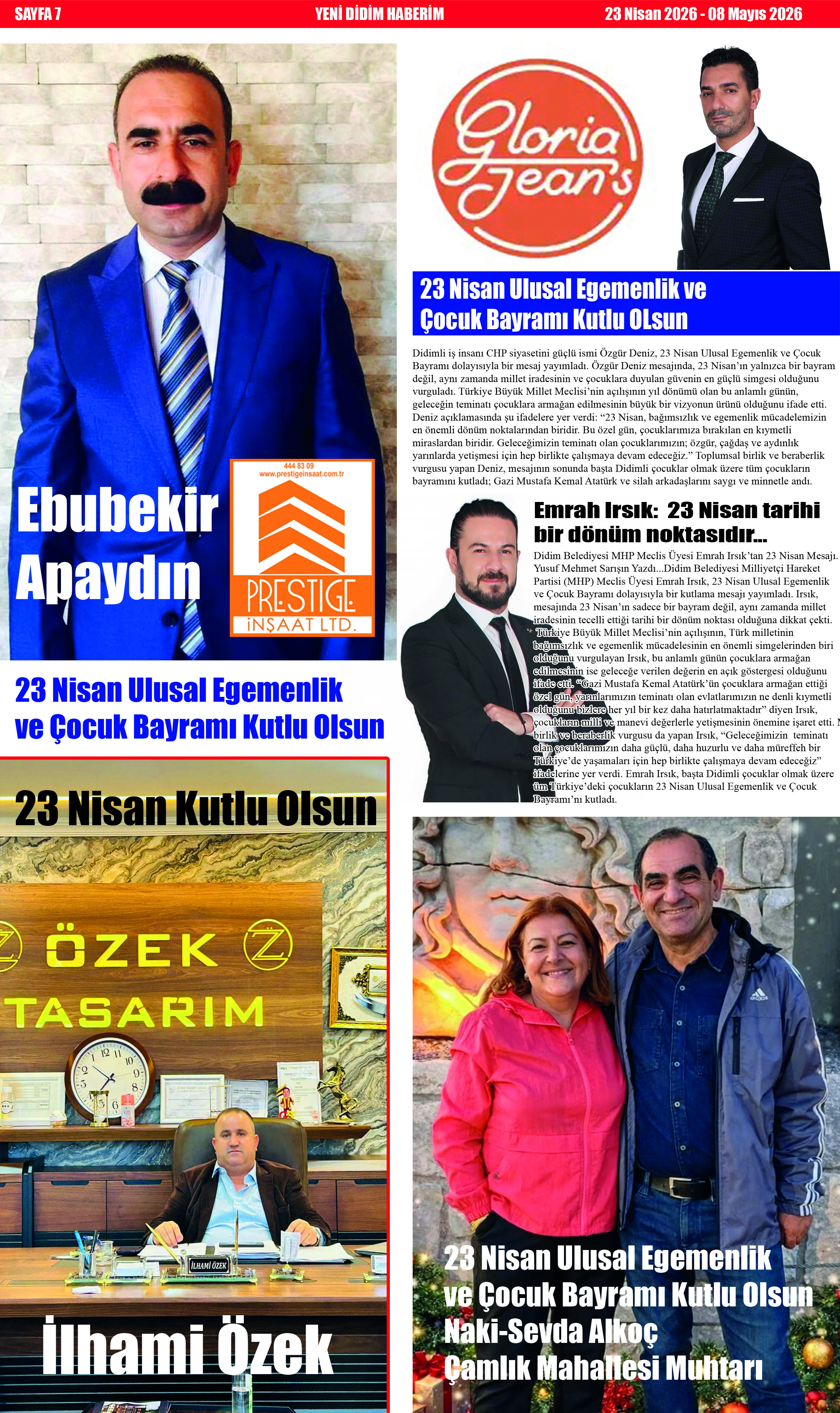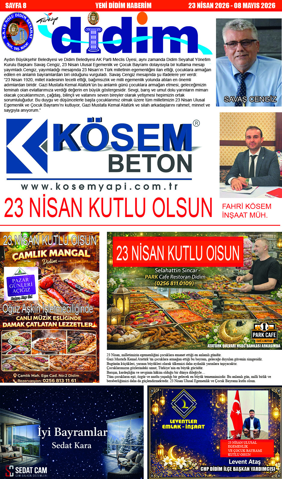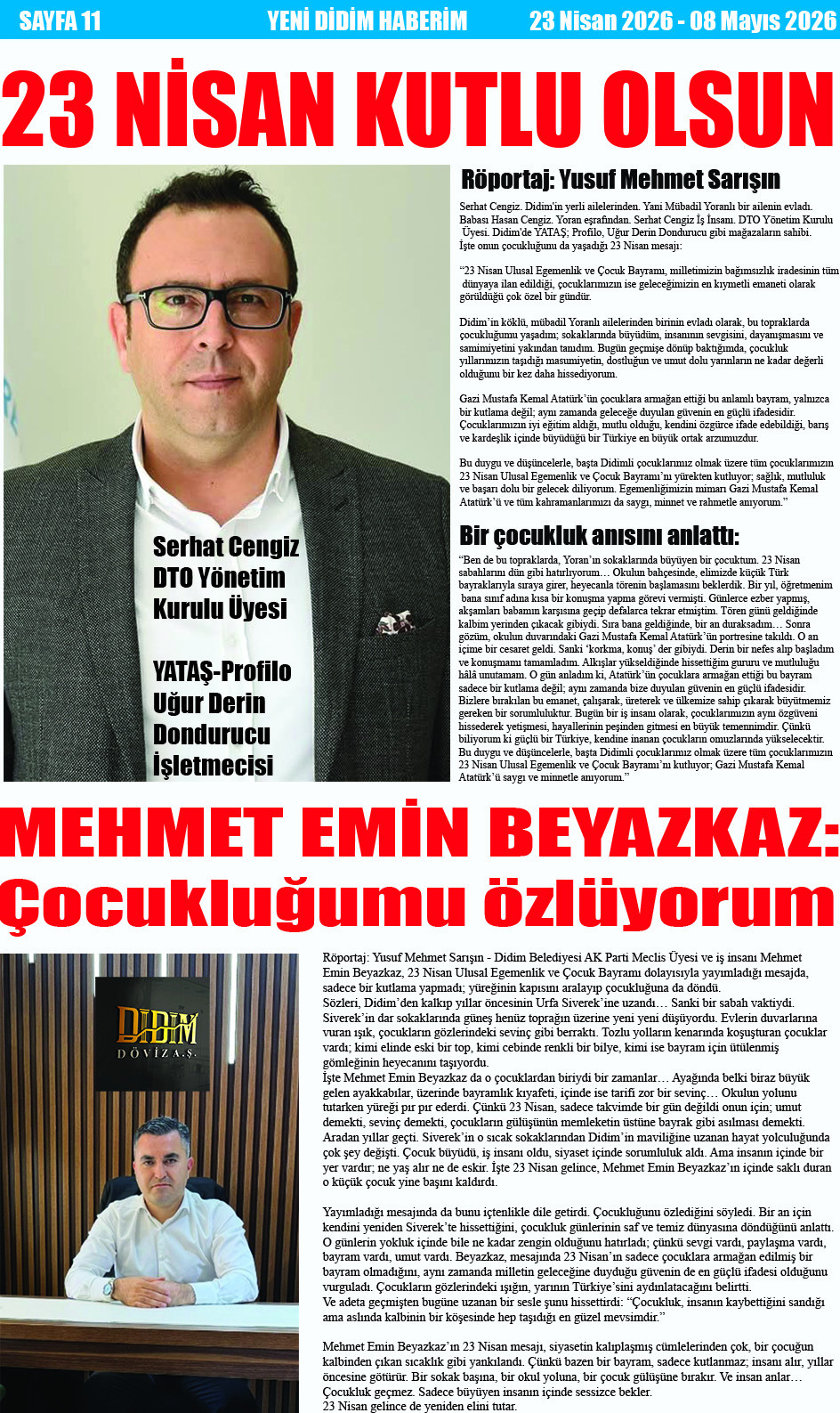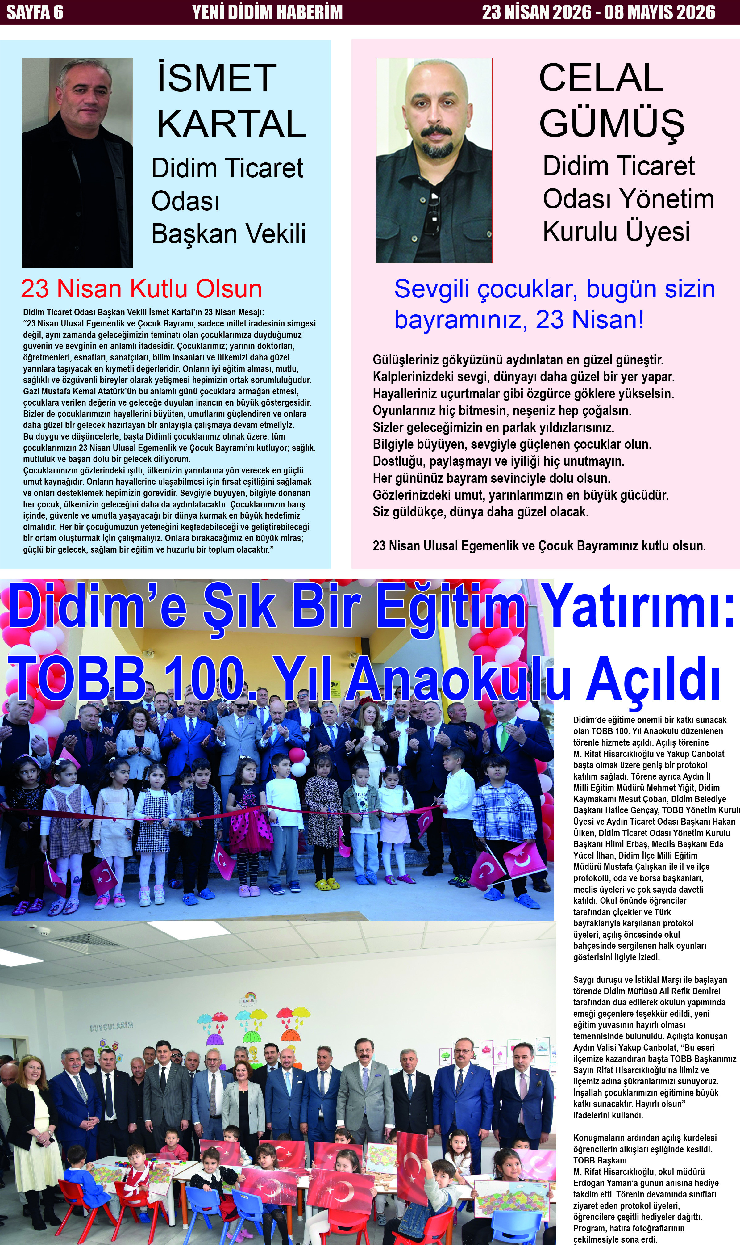Yeni Didim Haberim Gazetesi 23 Nisan Özel Sayısı Çıktı. Reklam verenlere teşekkür ederiz. (YUsuf Mehmet Sarışın - Zekiye Sarışın)