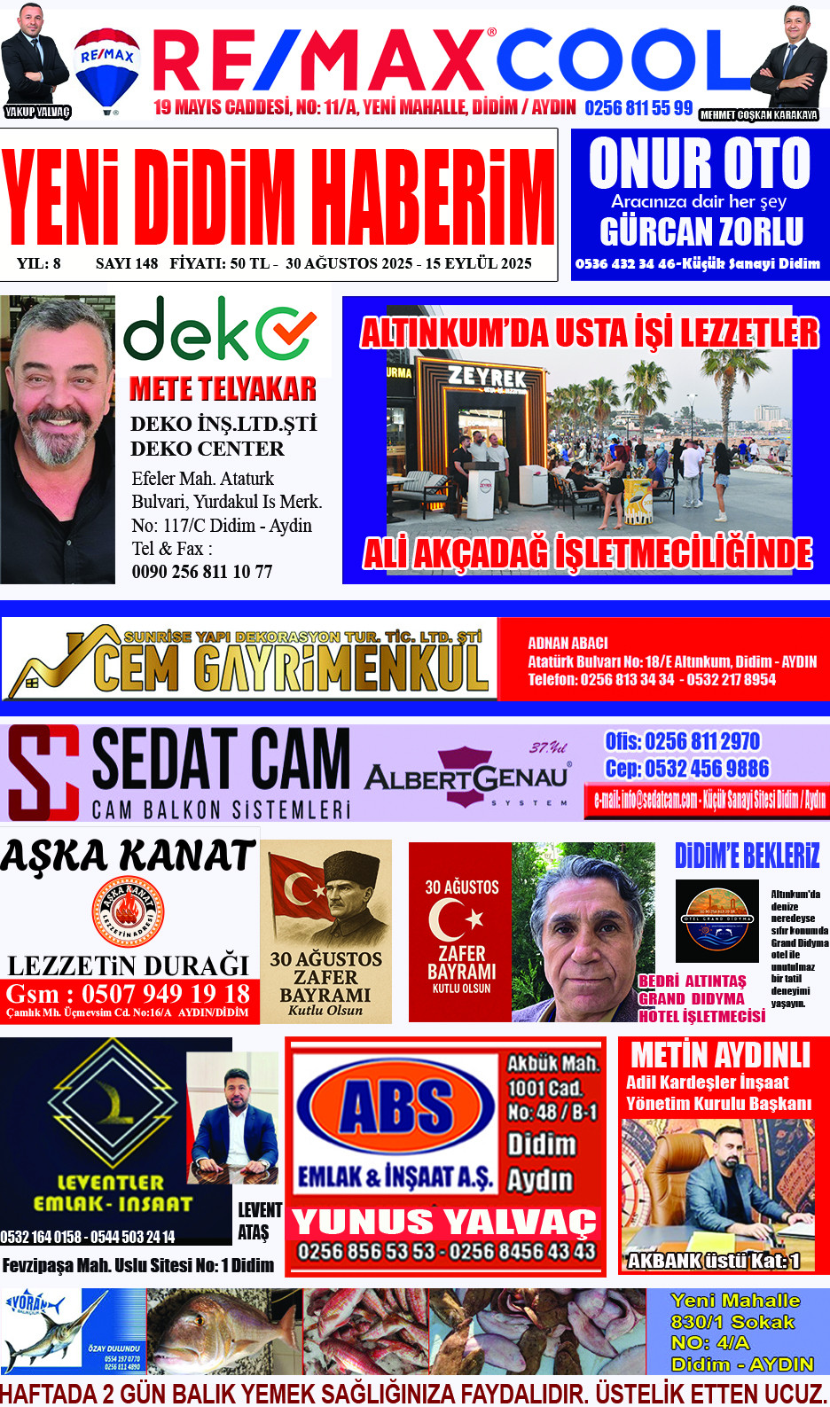 Yeni Didim Haberim Gazetesi 30 Ağustos Özel Sayısı Çıktı. Reklam verenlere teşekkür ederiz.