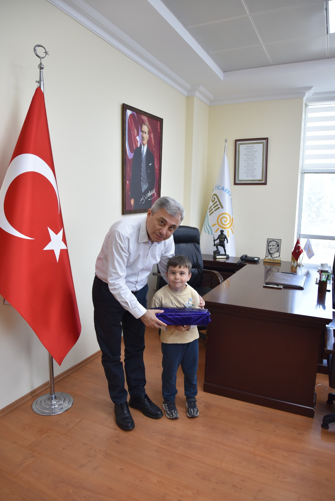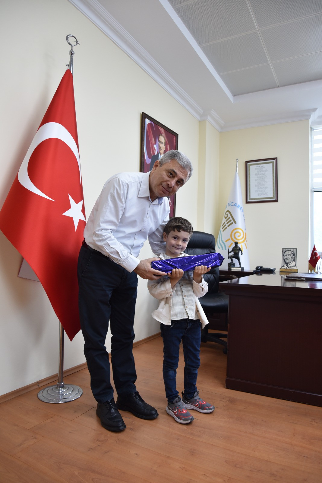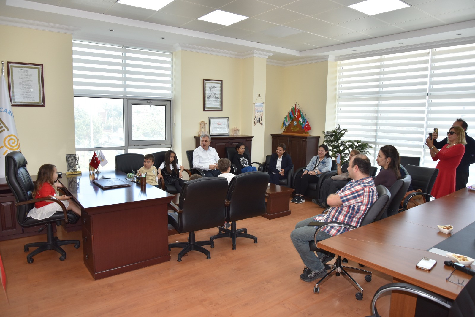 Didim Ticaret Odası Yönetim Kurulu Başkanı Hilmi Erbaş, makamını temsili olarak Didim Vilayetler Hizmet Birliği Anaokulu öğrencilerine devretti. Okul Müdürü Sevgi Kürek ve velilerin eşliğinde gerçekleşen ziyarette, Gökçe Tarhan, Barlas Kozak, Cemre Kıral, Ogeday Utku Olcay ve Elif Gökçe Kılıç isimli öğrenciler, geleceğe dair hayallerini ve projelerini dile getirdi.