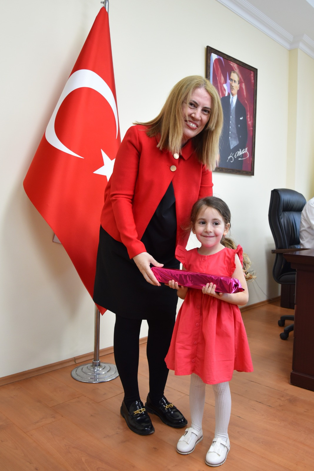 Didim Ticaret Odası’nda düzenlenen etkinlikte, geleceğin yöneticileri olarak görülen minik öğrenciler protokol üyeleriyle bir araya geldi.