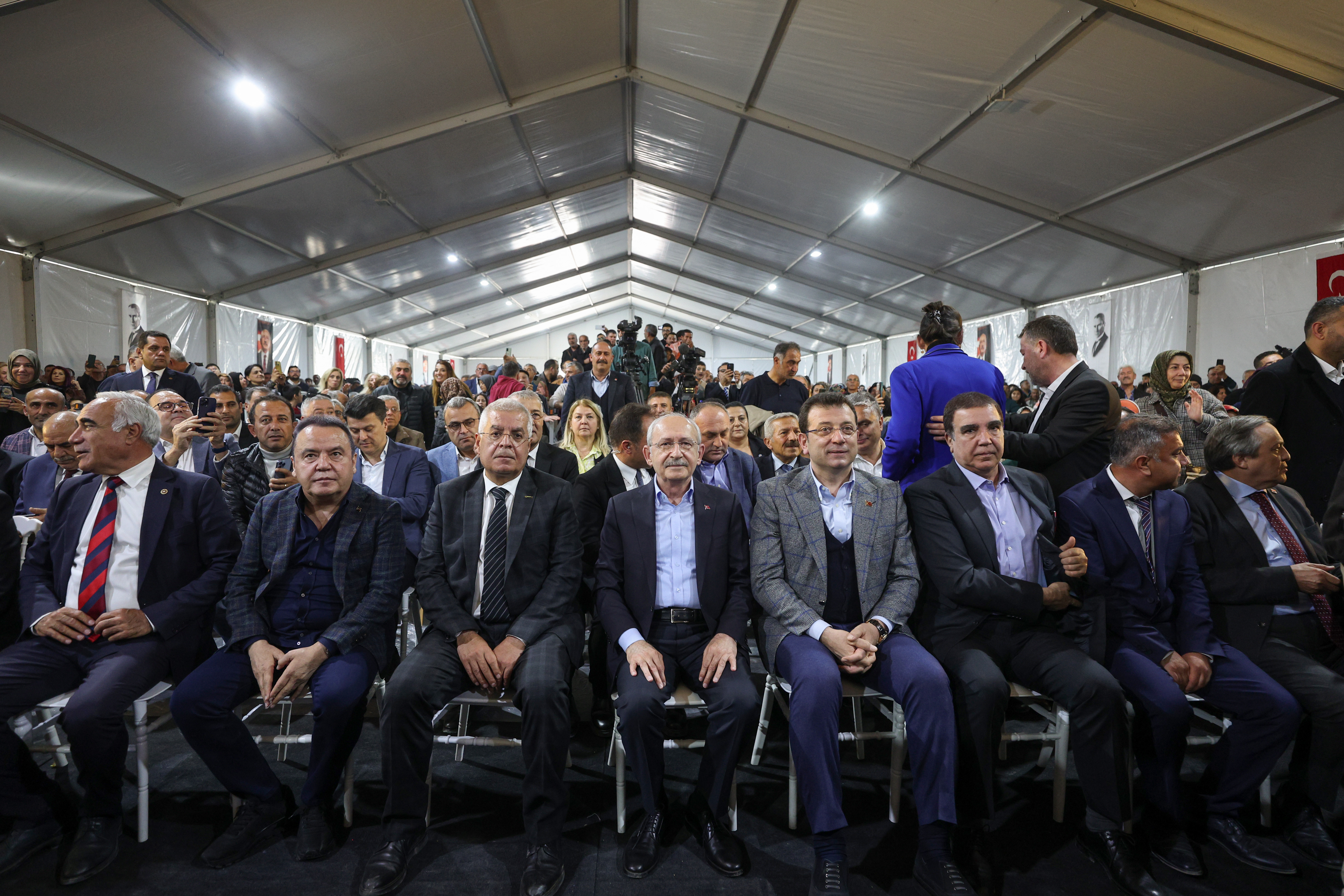 Efendim arkadaşlarım başlarken yaşanan dramı anlattılar. Evet, büyük bir dram yaşadık. Resmi rakamlara göre 50 binin üzerinde can kaybımız var. Dolayısıyla hem yaraları sarmak, hem sizlerle beraber olmak için bugün Nurdağı’ndayım. Aramızda milletvekili arkadaşlarım var, belediye başkanı arkadaşlarım var. Ama iki büyükşehir belediye başkanı arkadaşımız da burada. Muhittin Böcek, Antalya Büyükşehir Belediye Başkanımız ve Ekrem İmamoğlu, İstanbul Büyükşehir Belediye Başkanımız. İkisine de yürekten teşekkür ederim.