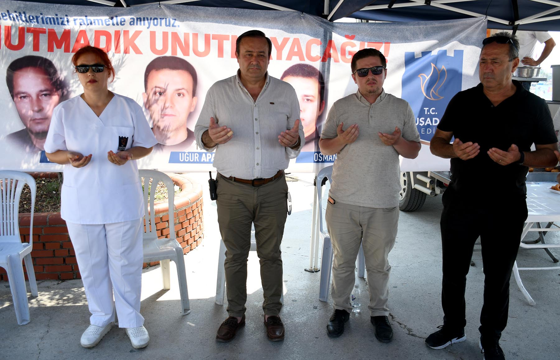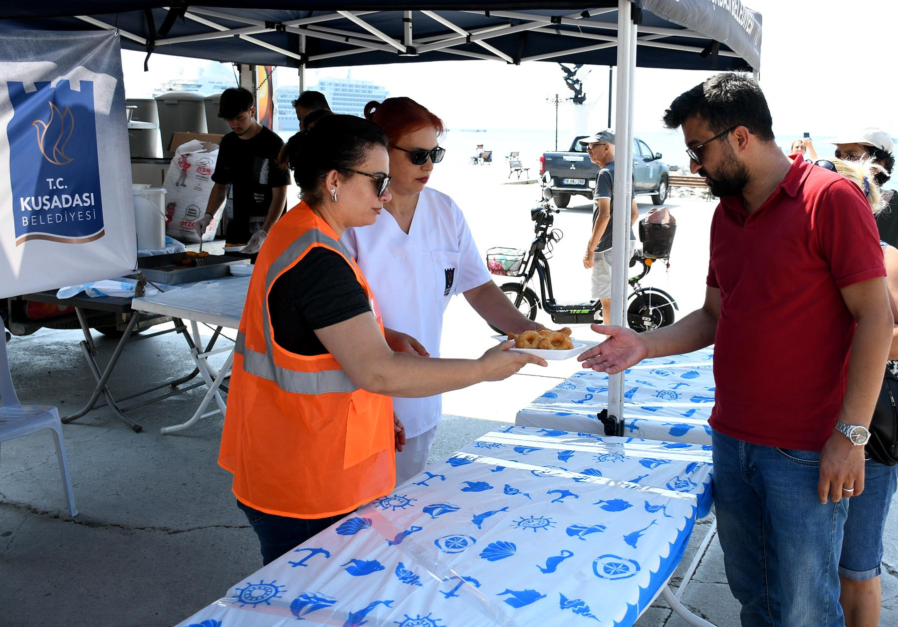 Kuşadası Belediyesi tarafından hayatını kaybeden belediye çalışanlarından Osman Sarı, Veysel Turgut ve Uğur Apaydın için önce mevlit okutuldu, dualar okundu. Ardından da görev şehitleri için İsmail Cem Dostluk ve Barış Meydanı’nda lokma döküldü.