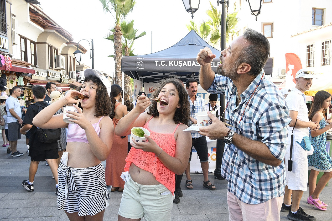 Kuşadası Belediyesi ile Kuşadası Altın Güvercin Kültür Sanat ve Tanıtım Vakfı (KUSAV) tarafından Ayhan Sicimoğlu’nun danışmanlığında bu yıl ikinci kez düzenlenen Kuşadası Sokak Festivali ikinci günü tadım atölyeleri ve lezzet durakları ile renklendi.