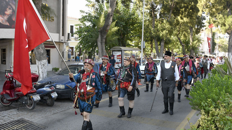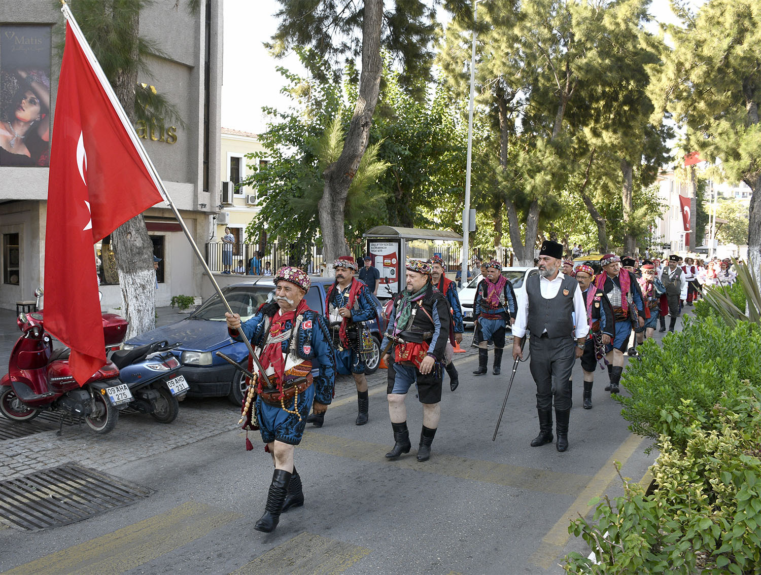 Esareti simgeleyen kız çocuğunun Efeler tarafından kurtarılışını anlatan temsili tören ile başlayan kutlamalar Atatürk Meydanı’nda sürdü.