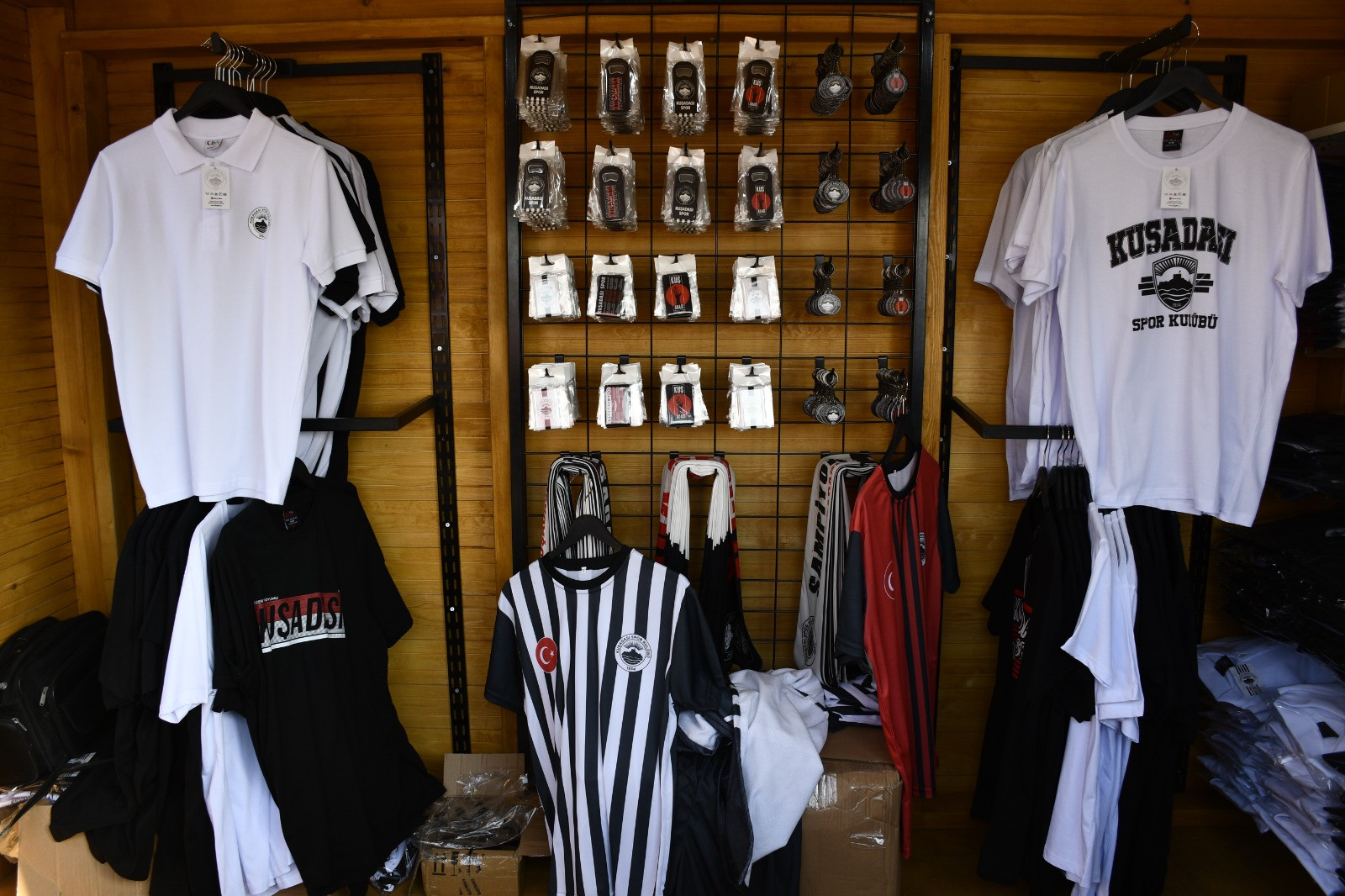 İsmail Cem Dostluk ve Barış Meydanı’ndaki El Heykeli önünde bulunan mağazada Kuşadasıspor’un forma, atkı, tişört, şapka, anahtarlık ve çorap gibi lisanslı ürünleri satışa sunulacak.