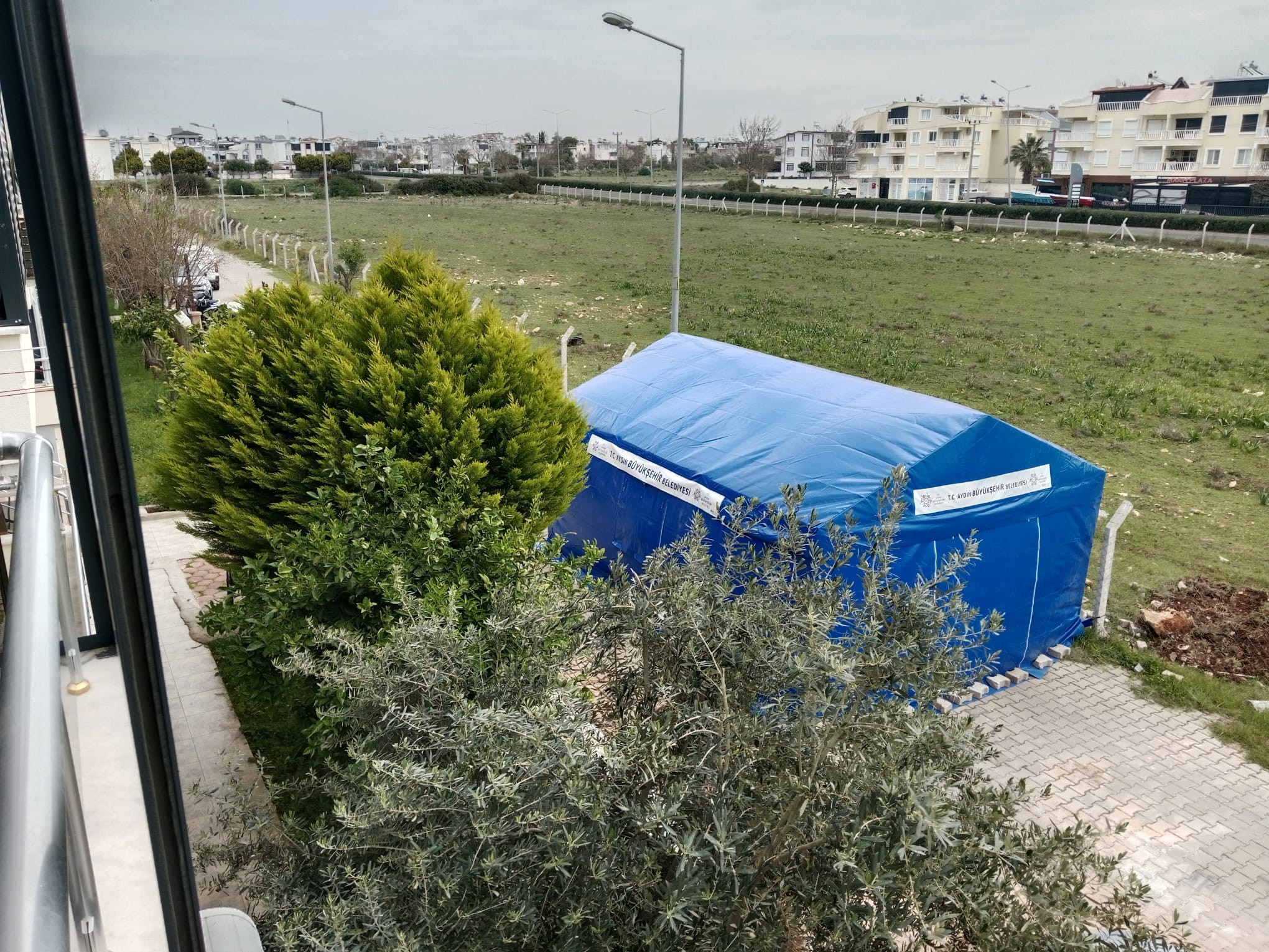 Evin önüne taziye çadırı kuruldu.