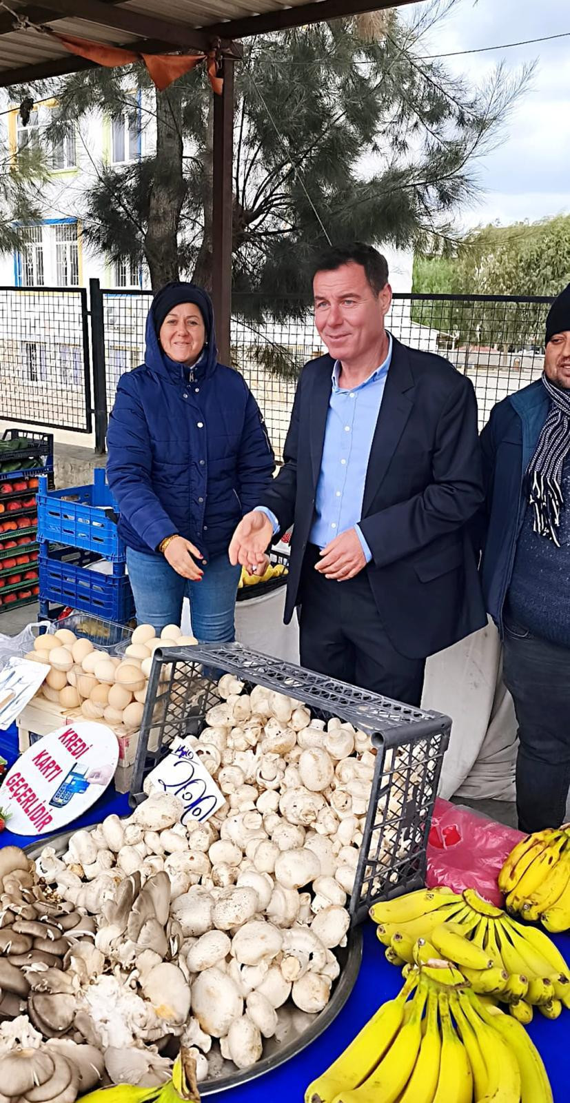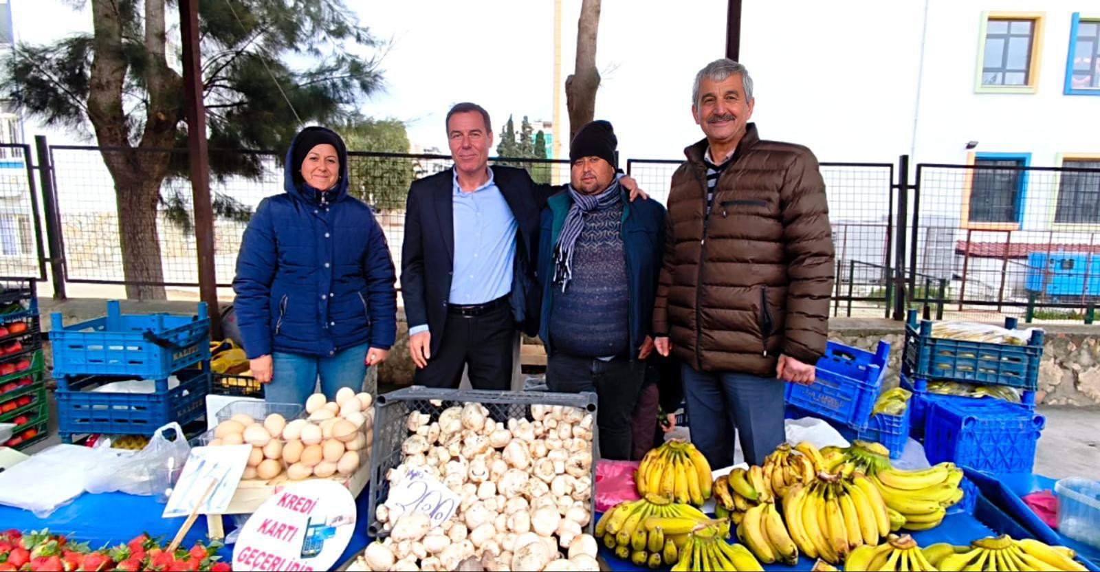 Başkan Erul, eşi Cansel Erul ve Başkan Vekili Nihat Özçevik ile birlikte ilçede kurulan Çarşamba Pazarı’nda pazarcı esnafıyla bir araya geldi.