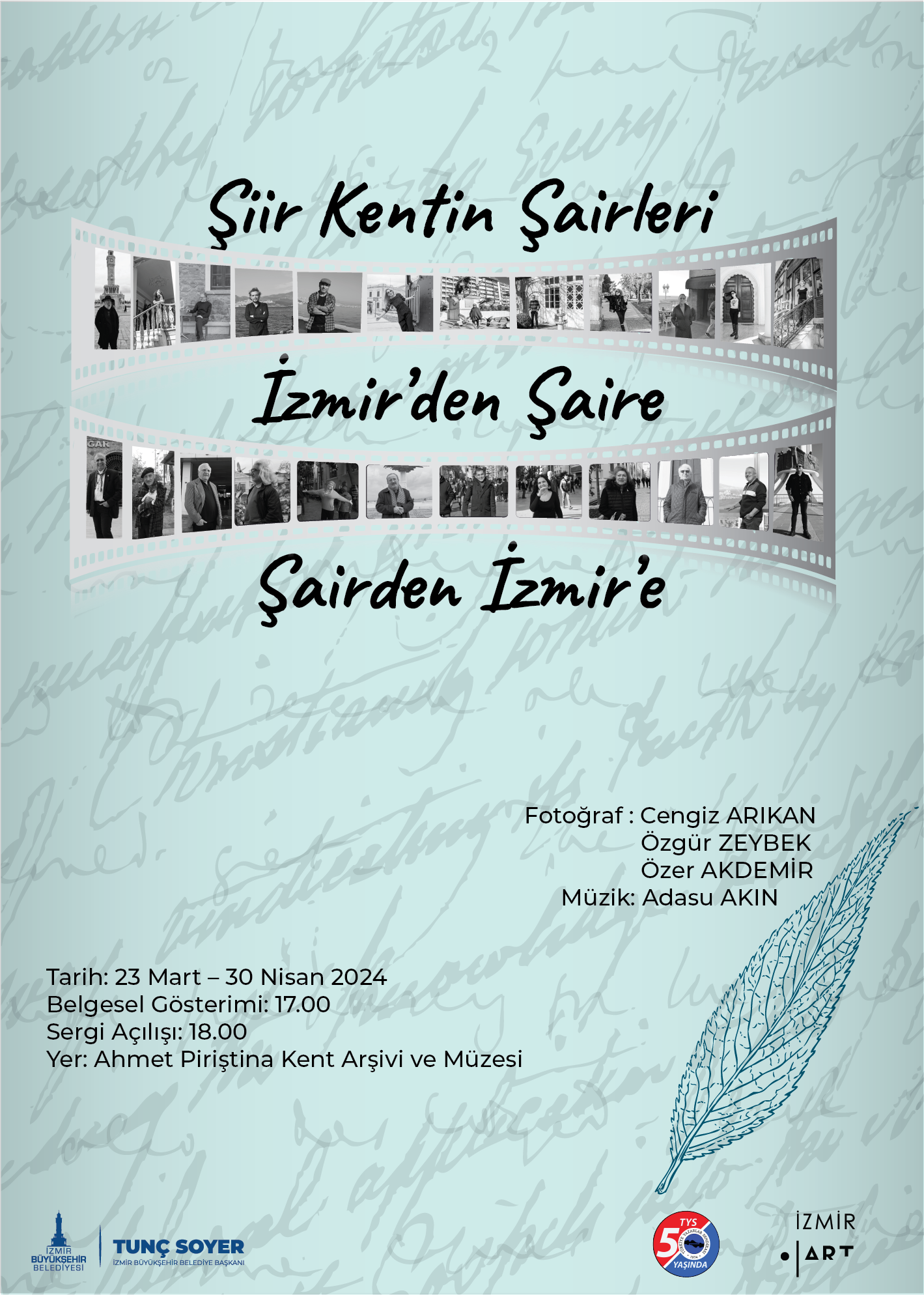 “İzmir’den Şaire Şairden İzmir’e / Şiir Kentin Şairleri” adlı etkinlik, 23 Mart Cumartesi günü, Ahmet Piriştina Kent Arşivi ve Müzesi’nde (APİKAM) gerçekleştirilecek. Saat 17.00’de başlayacak etkinlikte önce İzmirli şairlerin, kentle ilgili şiirlerinin öykülerini anlattıkları “Bir Kente Fısıldamak” belgeselinin ilk gösterimi yapılacak.