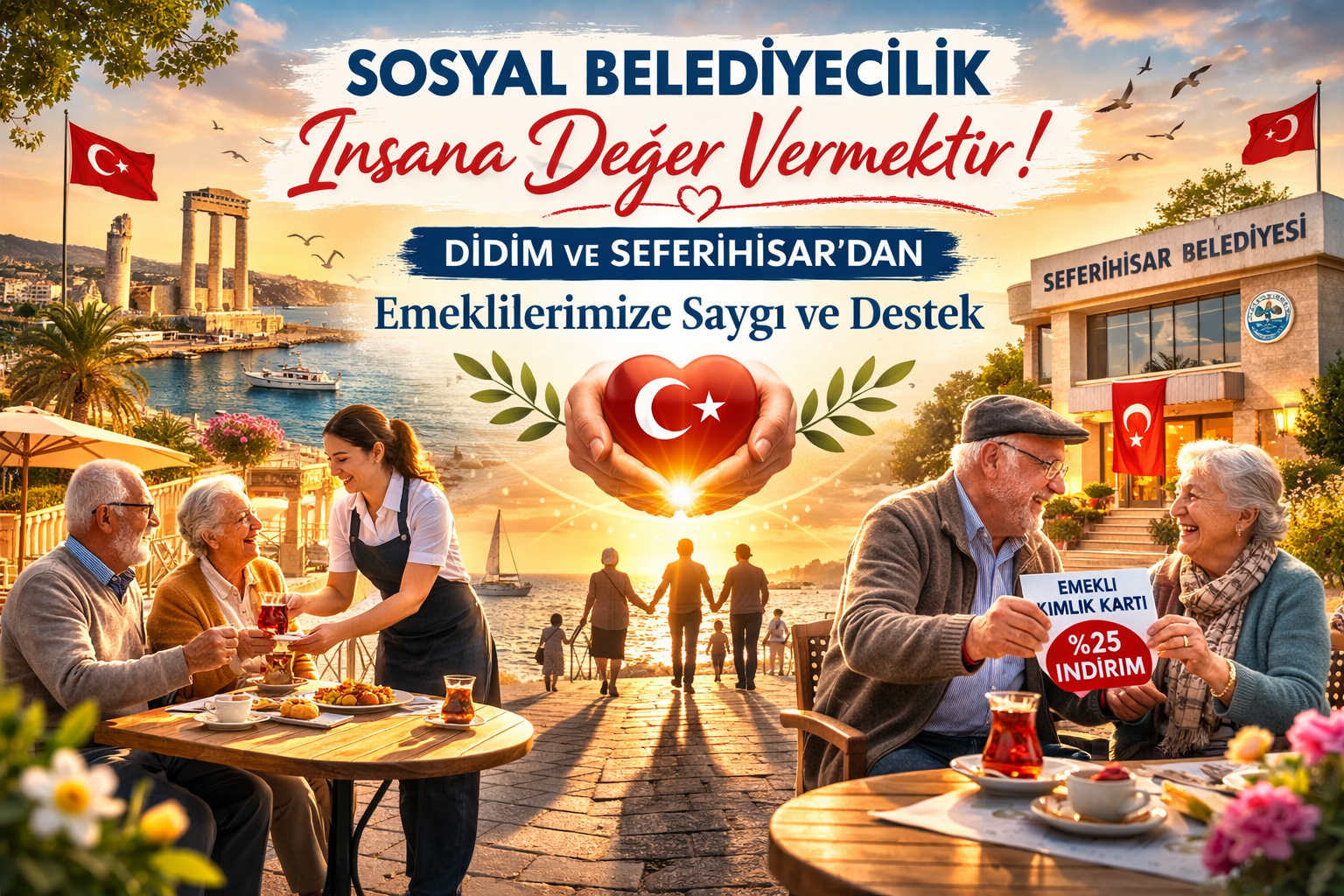 Seferihisar Belediyesi’nin Ramazan Bayramı boyunca sosyal tesislerde %25 indirim sağlaması, tam da bu duyarlılığın bir yansımasıdır. Sığacık’tan Ürkmez’e, Teos Yazarlar Evi’nden Kent Belleği’ne uzanan bu uygulama; emeklilere sadece ekonomik bir nefes değil, aynı zamanda “siz değerlisiniz” mesajını da veriyor.