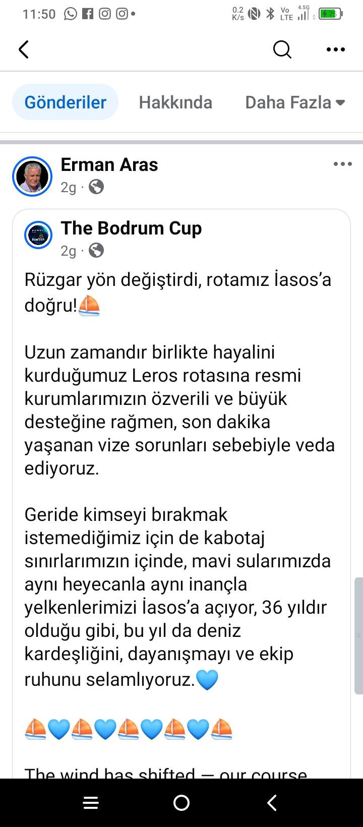 RÜZGAR YÖN DEĞİŞTİRDİ ROTA MİLAS İASOS'A DOĞRU YELKEN AÇTI.