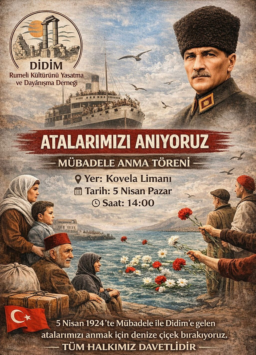 We invite all members of the public to the flower-laying ceremony we will hold in remembrance of our ancestors who arrived in Didim through the population exchange on April 5, 1924, honoring them with respect, mercy, and gratitude.