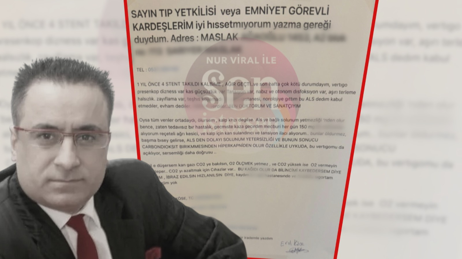 Aynı zamanda tıp doktoru olan Erol Köse, ALS hastalığı teşhisi koyulduktan sonra hazırladığı ilk mektubu olası durumda, evde baygın halde bulunursa diye, sağlık personeline yazmış. Detaylı bir şekilde hastalığını ve müdahale şeklini anlatmış. Erol Köse, her 2 mektubu da evinin içinde gözüken bir yerde, cam bir bölümün üzerine asmış.