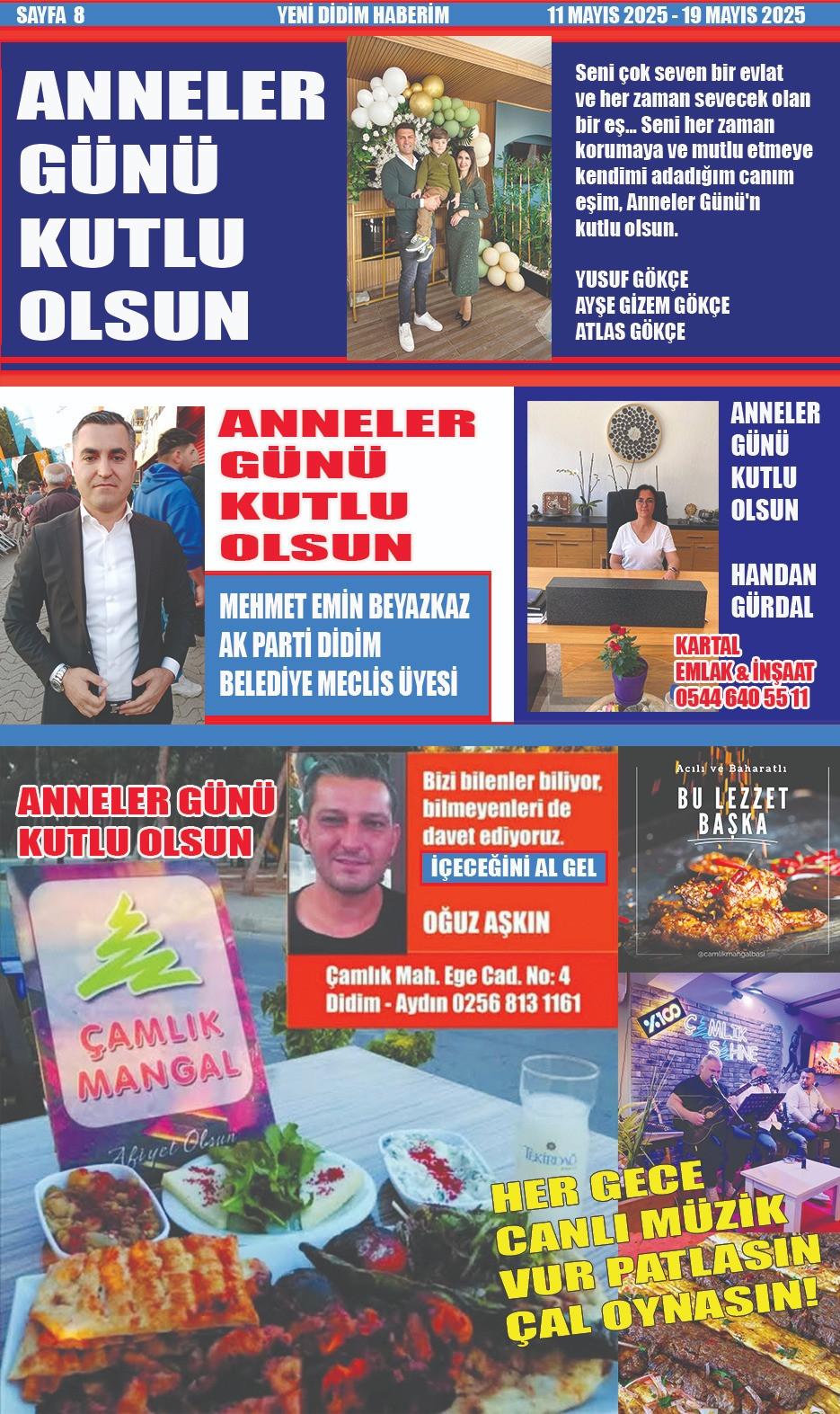 Yeni Didim Haberim Gazetesi Anneler Günü Özel Sayısı Çıktı. Reklam verenlere teşekkür ederiz. Anneler Günü Kutlu Olsun.