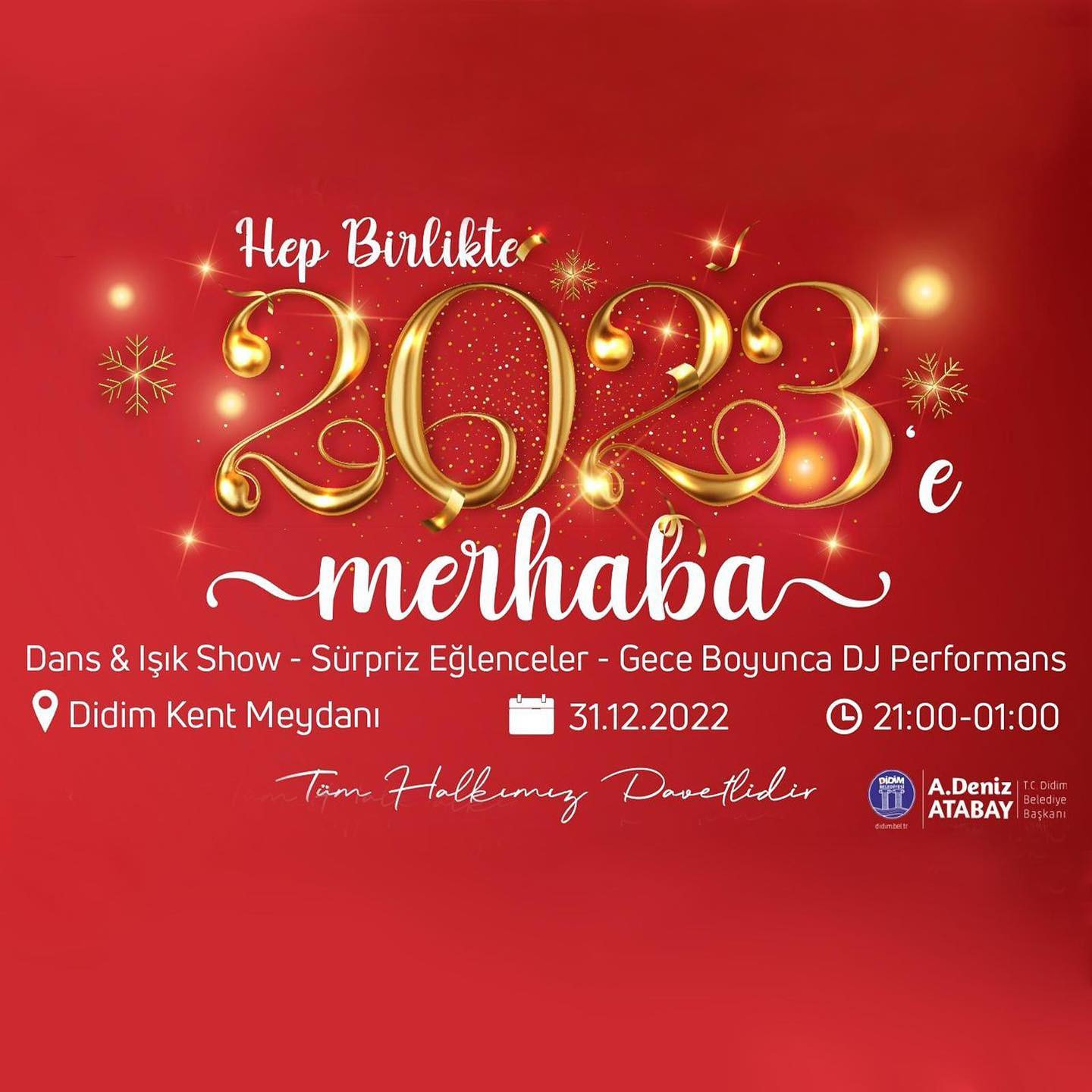 Dans ve Işık showları, DJ performansı ve gece boyu sürecek sürpriz eğlencelerle 2023 yılına keyifli bir başlangıç yapacağımız etkinliğimize tüm halkımız davetlidir!