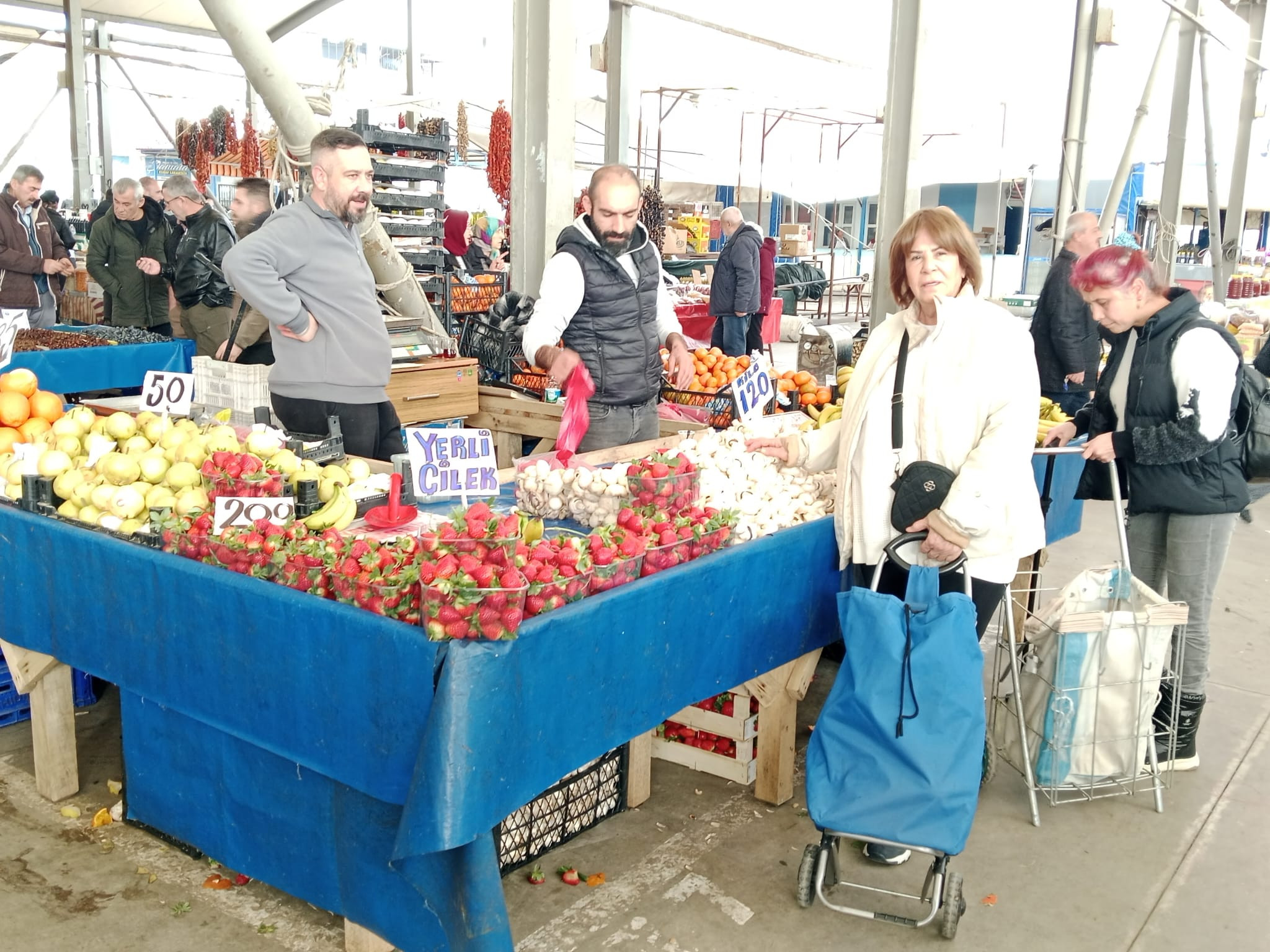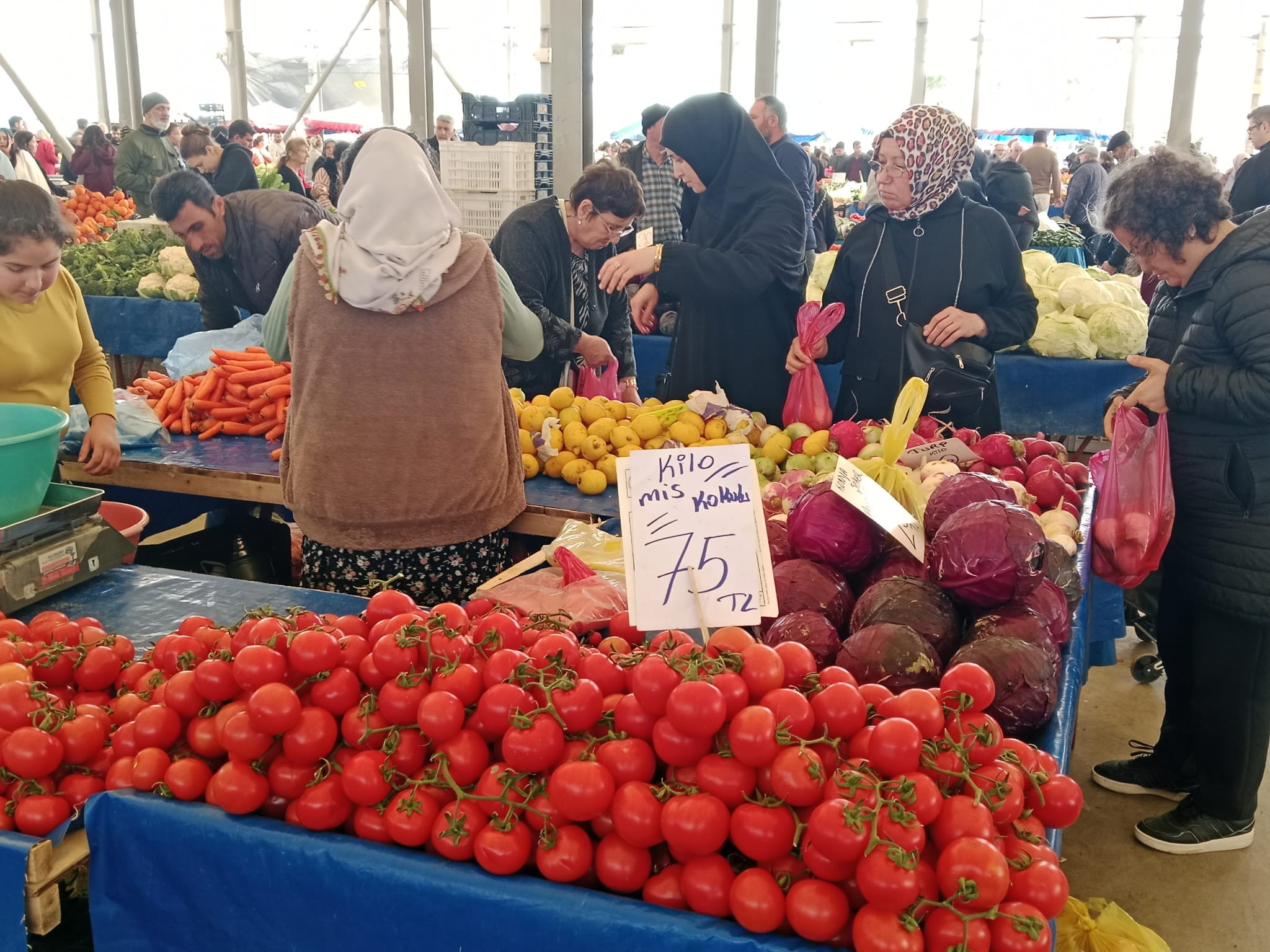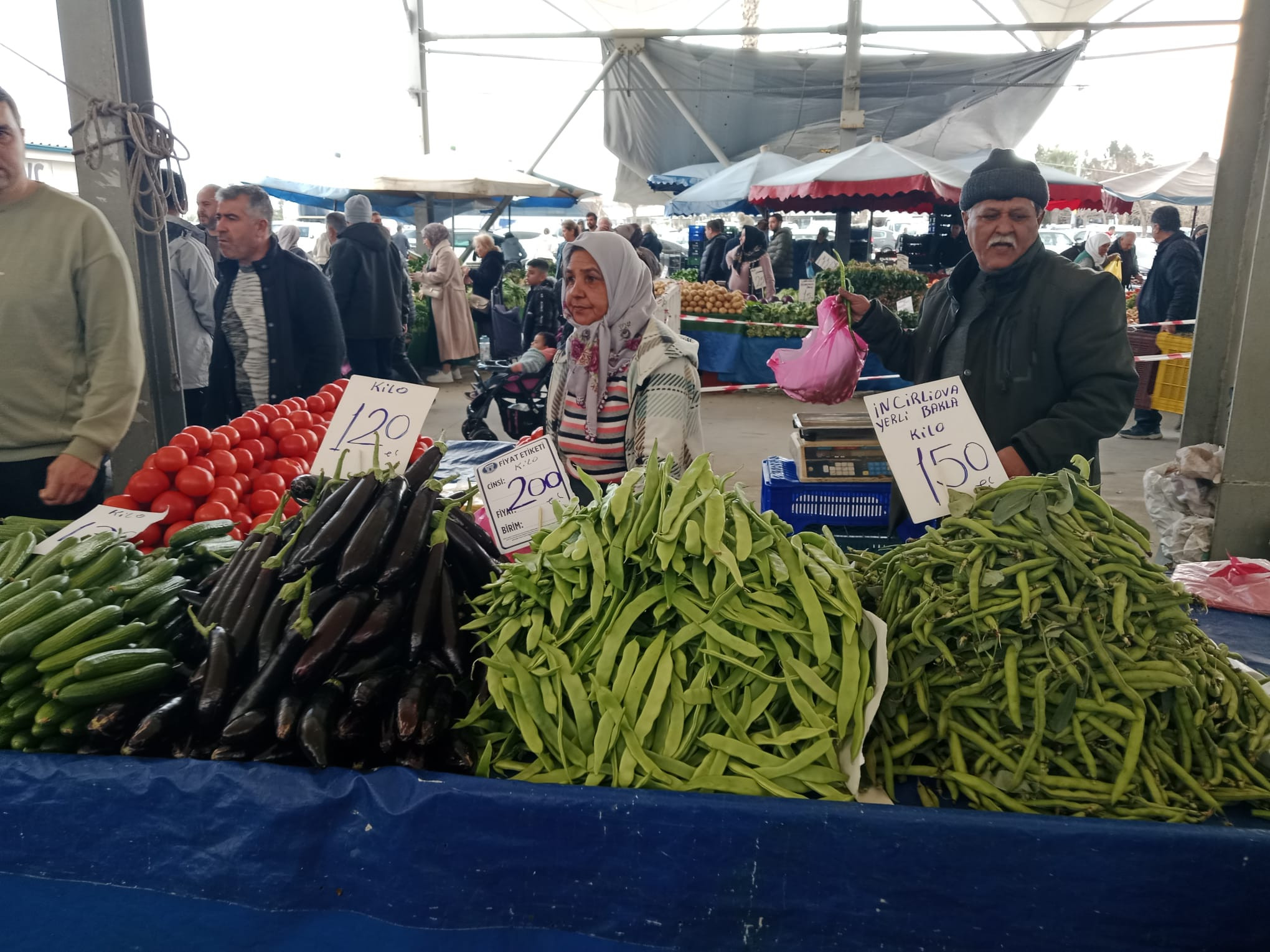 Didim Cumartesi Pazarı’nda sebze meyve bol ama umut pahalı.